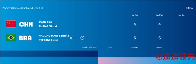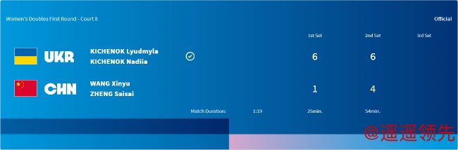 而在2场女双首轮比赛中,王欣瑜/郑赛赛同样以1-6/4-6不敌乌克兰组合奇琴诺克姐妹,无缘第二轮;袁悦/张帅则是以2个4-6不敌6号种子、巴西组合玛雅/史蒂芬妮,遭遇一轮游。