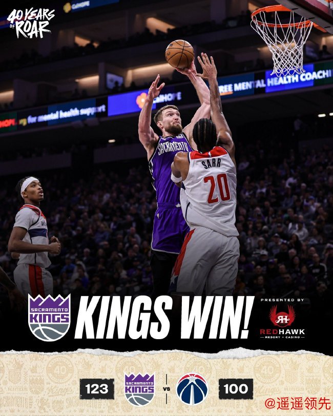 小萨16投12中高效砍下29分18篮板4助攻率队取胜,德罗赞24分6篮板,蒙克23分4助攻,国王两连胜西部第九。